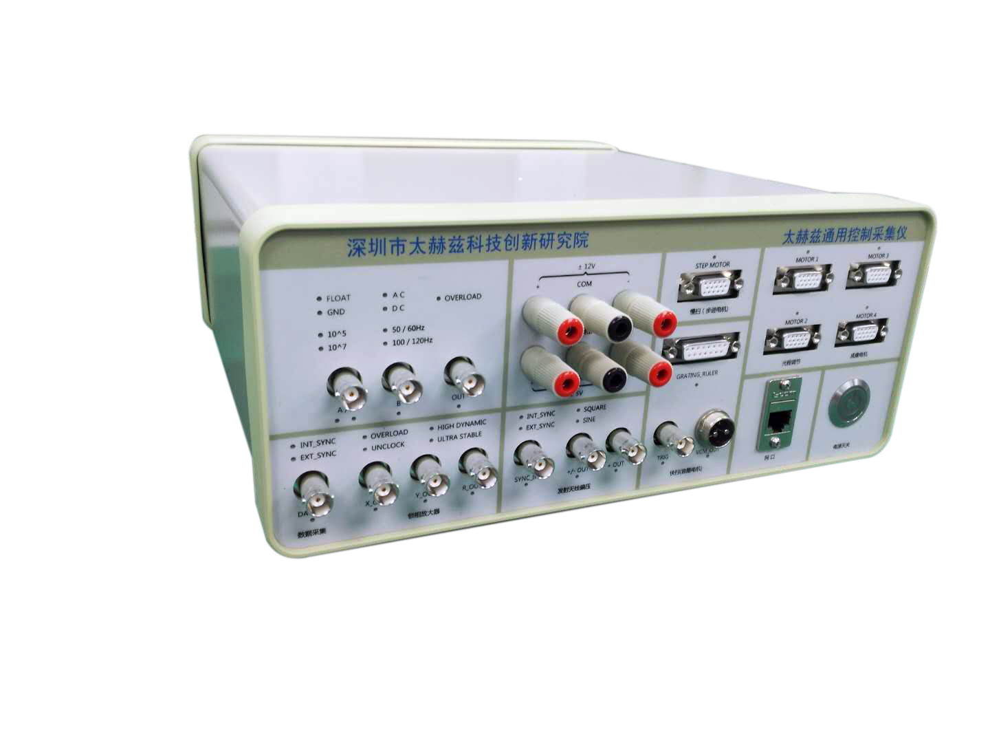 The terahertz spectral signal acquisition instrument integrates the control circuit, signal processing and acquisition circuit modules to build a terahertz time domain spectrometer. Users do not need to design the circuit and do not need programming, so they can easily control the fast sweep motor ,slow sweep, imaging motor, adjusting optical path, offset transmitting antenna and other modules, then collect the signals of the receiving antenna and complete the terahertz time domain spectrometer system required for construction.
